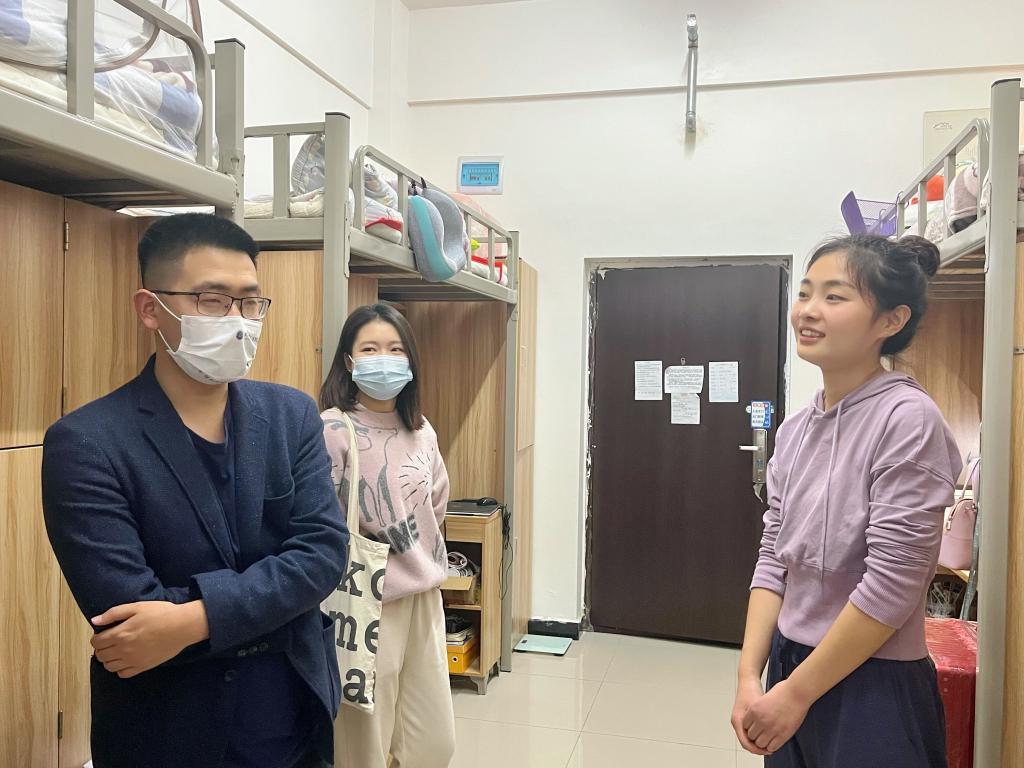 4月21日晚,醫(yī)學(xué)院學(xué)生科副科長鄒燚帶領(lǐng)學(xué)院全體輔導(dǎo)員走訪了部分寢室。各位老師就各寢室內(nèi)同學(xué)們的生活作風(fēng)、學(xué)習(xí)氛圍情況進行了溝通交流,并引導(dǎo)寢室長建立“宿舍學(xué)習(xí)公約”,以促進寢室全體同學(xué)在學(xué)業(yè)上互相提醒監(jiān)督、互相幫助、共同進步。