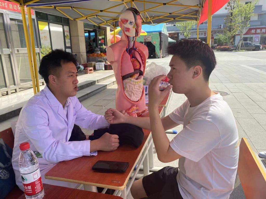 活動(dòng)現(xiàn)場,前來咨詢的同學(xué)接踵而來,老師們也耐心地解答了同學(xué)們的疑問?;顒?dòng)最后,殷彩橋老師為同學(xué)們?cè)O(shè)置了科普知識(shí)問答的游戲環(huán)節(jié),并準(zhǔn)備了小獎(jiǎng)品,增加了此次活動(dòng)的趣味性。面對(duì)老師的提問,醫(yī)學(xué)生們的回答條理清晰,有理有據(jù),偶爾答錯(cuò)的同學(xué)也會(huì)得到老師細(xì)致的講解。