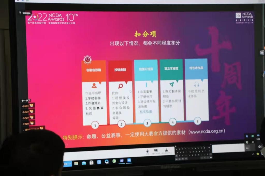 本網(wǎng)訊(通訊員 葉志聰/圖 肖雅蘭/文)3月31日下午,建筑與設(shè)計(jì)學(xué)院設(shè)計(jì)系組織教師收看“第十屆全國(guó)高校數(shù)字藝術(shù)設(shè)計(jì)大賽”首場(chǎng)(線上)賽事宣講會(huì),并對(duì)學(xué)院關(guān)于賽事的籌備、參賽作品組織情況進(jìn)行討論匯報(bào)。