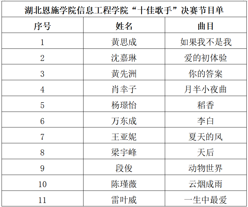 信息工程學(xué)院“十佳歌手”決賽節(jié)目單