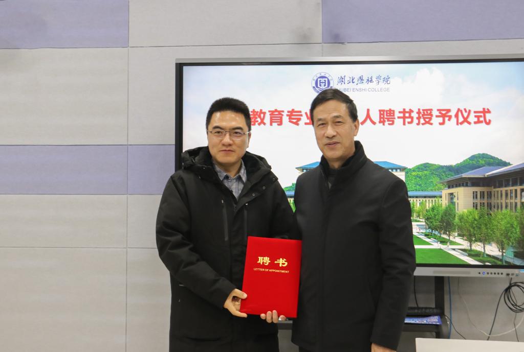 2021年12月23日,音樂與體育學(xué)院在圖書館微格教室舉辦學(xué)前教育專業(yè)負(fù)責(zé)人聘書授予儀式暨專題講座。湖北省學(xué)前教育研究會(huì)學(xué)術(shù)委員、湖北省幼兒園教師國(guó)培專家?guī)斐蓡T、武漢市學(xué)前教育專業(yè)委員會(huì)副會(huì)長(zhǎng)、武漢市老教授協(xié)會(huì)副會(huì)長(zhǎng)孫凌毅教授蒞臨湖北恩施學(xué)院,正式加盟音樂與體育學(xué)院學(xué)前教育專業(yè)教學(xué)團(tuán)隊(duì),成為兼職專業(yè)負(fù)責(zé)人。副校長(zhǎng)曾繁榮、校長(zhǎng)助理?xiàng)罘渤鱿瘍x式。音樂與體育學(xué)院院長(zhǎng)助理徐淑良主持儀式。