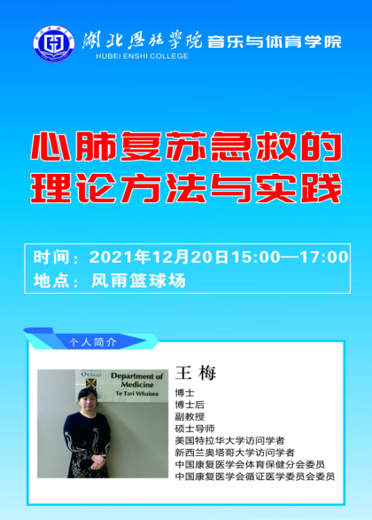 2021年12月20日至12月21日,湖北恩施學(xué)院音樂與體育學(xué)院有幸邀請到“武漢體育學(xué)院”王梅副教授來我校進(jìn)行了兩場別開生面的講座。音樂與體育學(xué)院體育系全體教職工出席講座,音樂與體育學(xué)院19—21級體育教育專業(yè)學(xué)生全體到場。