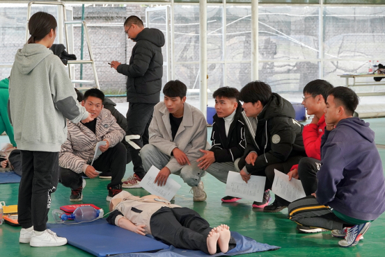 2021年12月20日下午,在田徑場的風(fēng)雨籃球棚里組織開展了“心肺復(fù)蘇急救的理論方法與實(shí)踐”培訓(xùn)講座。在本次培訓(xùn)講座上,王梅副教授提出了“心肺復(fù)蘇術(shù)也稱之為起死回生術(shù)”這一觀點(diǎn),并舉出各種實(shí)例,強(qiáng)調(diào)了掌握心肺復(fù)蘇技能操作技術(shù)的重要性。掌握CPR操作技術(shù),必須以端正思想態(tài)度為前提,做到急救知識和技能的普及,全面提高老師以及同學(xué)的應(yīng)急救護(hù)能力。本次培訓(xùn)講座給體育系全體師生上了一堂十分實(shí)用的模擬訓(xùn)練課,通過本次培訓(xùn)講座,讓我院師生明白,掌握心臟復(fù)蘇技術(shù)對突發(fā)性暈厥和心臟驟停情況發(fā)生時急救處理的重要性,為大眾生命安全提供了重要保障。