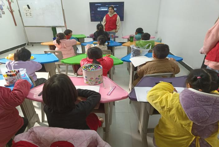 志愿者們一起到達目的地紅色驛站后和社區(qū)負責人對接好。將小朋友帶到教室,由我們的志愿者來為小朋友講授課程。一共兩節(jié)課,分別是《我給垃圾分分類》和《交通安全奇遇記》。志愿者們幽默風趣的講課風格讓小朋友們懂得了垃圾的分類要求并了解了一些交通安全知識。