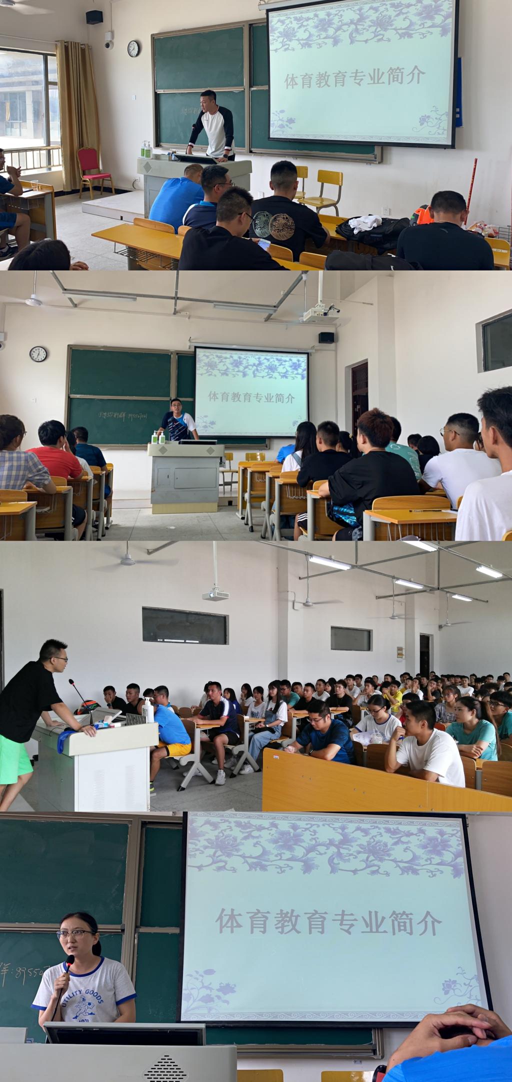 體育教育專業(yè):首先由體育系新生班主任杜瑤老師主持見面會的開始,然后所有任課老師結合自己的專長對所有新生進行了詳細介紹,彭覃老師也結合體育教育專業(yè)新版人才培養(yǎng)方案給同學們做了詳細全面的解讀,并對大學四年的規(guī)劃和發(fā)展提出期望。最后副院長張輝老師對同學們進行了安全教育。
