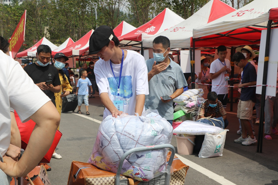 迎新志愿者是我院根據(jù)情況安排招募的志愿者,雖然他們來著不同的年級和專業(yè),但是他們都一樣的熱情、溫柔。根據(jù)新生報道環(huán)節(jié)不同工作不同,我院在各個站點安排了迎新志愿者,他們有的負責引導(dǎo)新生行李消殺、核酸檢測報告檢查、測量體溫,并與新生家長說明情況,耐心解答;而有的負責搬運行李,給行李貼好標簽,貼心的送到寢室樓下;還有的引導(dǎo)新生報到,溫柔為他們解答,做好了報到、宿舍協(xié)商、繳費等一系列新生解答,在學院新生迎新點下是他們揮灑的汗水。
