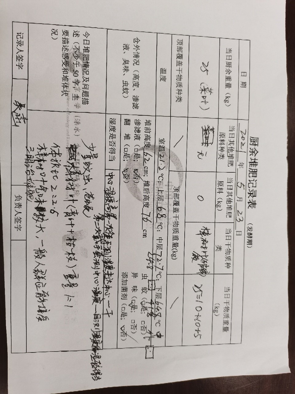 廚余堆肥記錄表