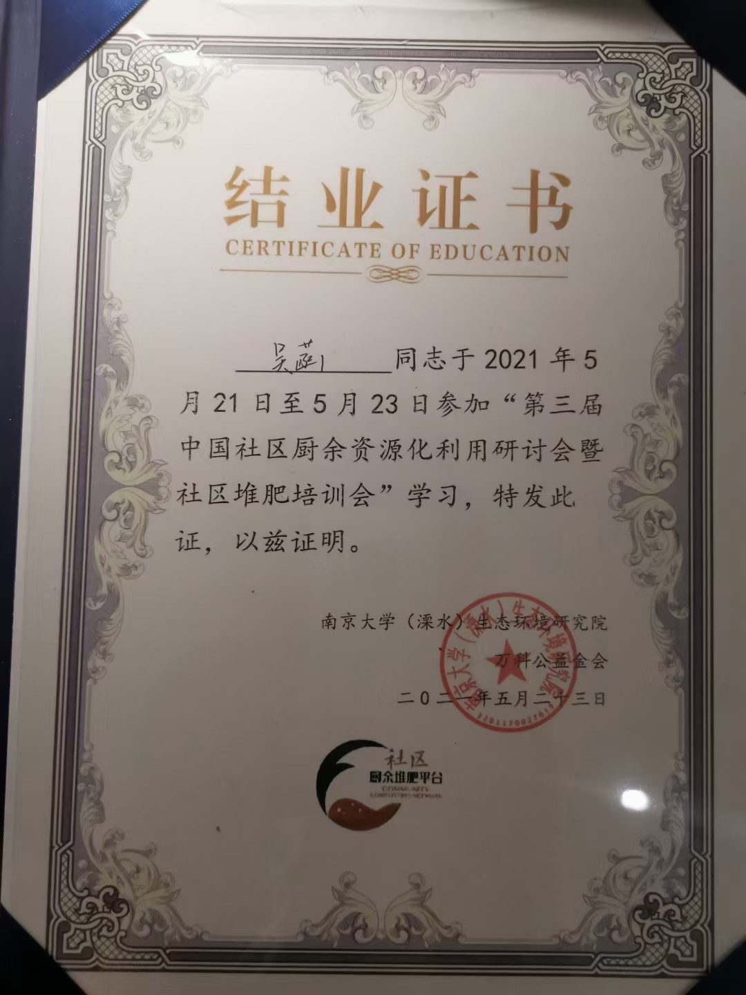 5月23日,社區(qū)堆肥培訓(xùn)會圍繞數(shù)據(jù)管理與上傳展開,學(xué)員親自參與堆肥并體驗數(shù)據(jù)記錄及上傳過程。隨后,學(xué)員圍繞社區(qū)廚余資源化利用主題分享學(xué)習(xí)心得,并頒發(fā)結(jié)業(yè)證書。