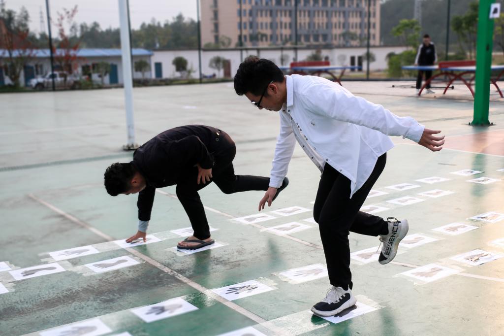 本次趣味運動會共包括知心朋友、抖一抖、背對背擁抱、摸石過河、手腳并用、鴨子過河六個項目。300余名參賽選手每四人分為一組,先后展開競賽,場上比拼激烈,你爭我趕,場外同學歡呼聲、加油聲不絕于耳。在鴨子過河項目中,參賽選手自己現(xiàn)場吹球后,氣球緊貼前面隊友后背,選手必須用力擁抱,在默契的配合下和共同的目標中,完成項目考驗,增進了情感和友誼。而在手腳并用項目中,則根據(jù)地上的手腳卡片提示,或靈活跳躍,或結果不一用錯肢體,考驗了選手們的肢體協(xié)作能力。