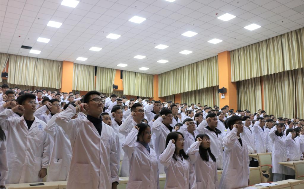 劉啟榮副院長從“你為什么選擇學(xué)醫(yī)”提問入手,帶入本次專業(yè)教育講座。全體新生起立宣誓《醫(yī)學(xué)生誓言》。劉副院長結(jié)合自己多年的臨床工作和教學(xué)經(jīng)驗分享自己的從醫(yī)體會,提出三點要求,一是要獻身醫(yī)學(xué)事業(yè),就要學(xué)一行、愛一行、干一行、鉆一行,樂學(xué)善思;二是要恪守醫(yī)德,維護醫(yī)學(xué)的圣潔和榮譽,尊師守紀;三是要不忘初心,付出努力,付出價值。并詳細講解了《醫(yī)學(xué)生誓言》和學(xué)醫(yī)的學(xué)習(xí)內(nèi)容、學(xué)習(xí)方法。