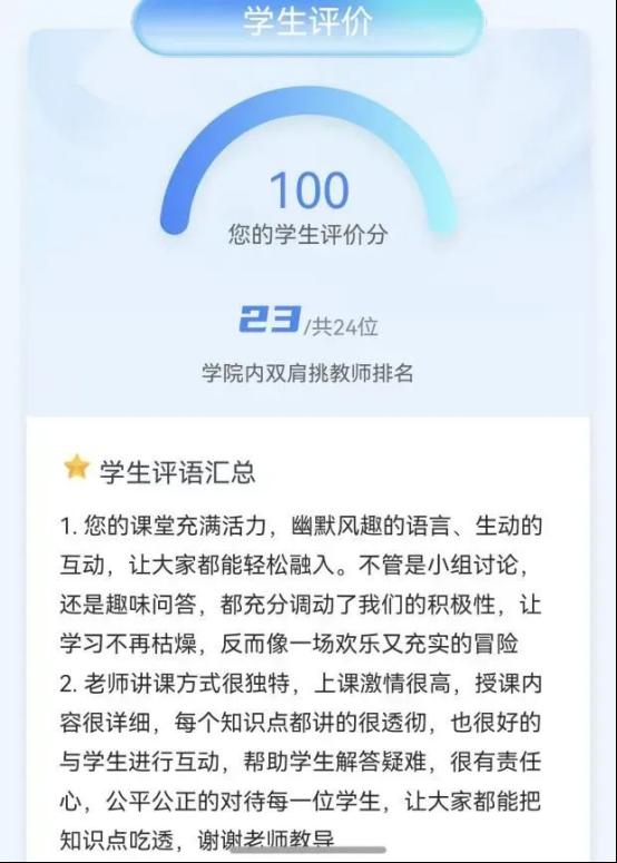 展望未來,學(xué)校亦會繼續(xù)深化數(shù)智技術(shù)在教學(xué)評價中的應(yīng)用,推動教學(xué)質(zhì)量保障體系的優(yōu)化升級。用數(shù)據(jù)說話,讓教學(xué)改進有據(jù)可依,此次AI賦能教學(xué)報告生成不僅是技術(shù)革新,更是教學(xué)理念的變革。