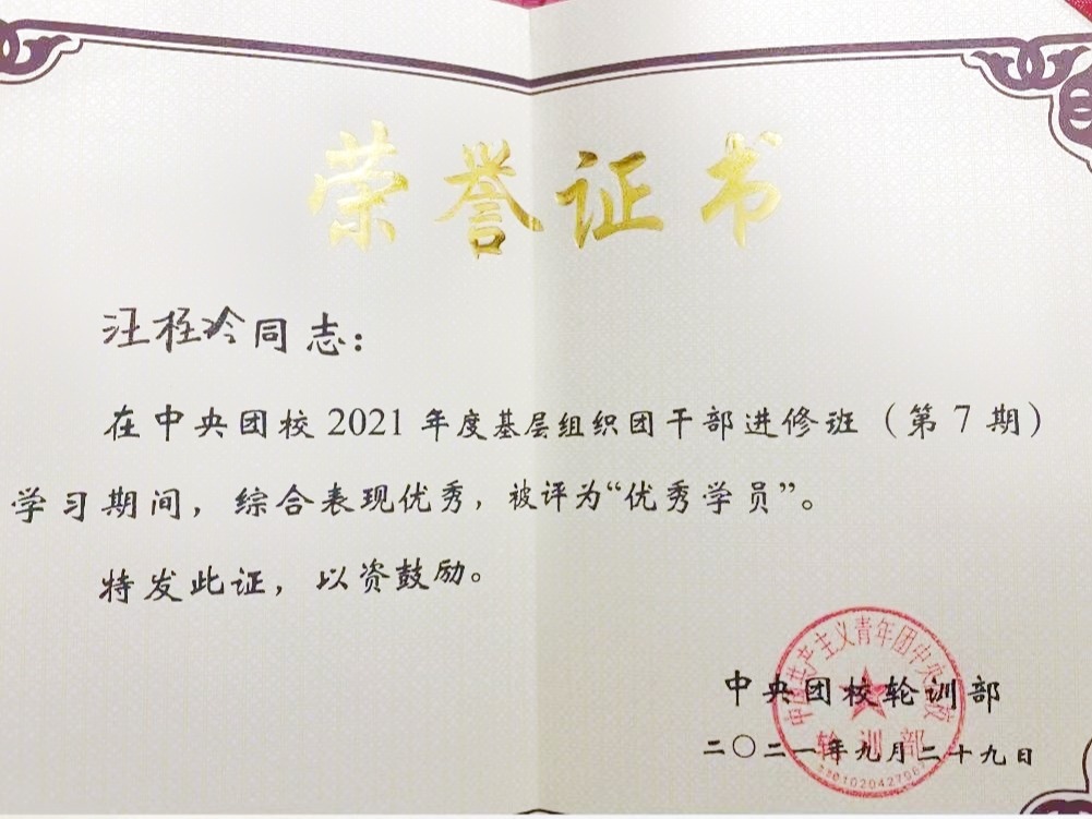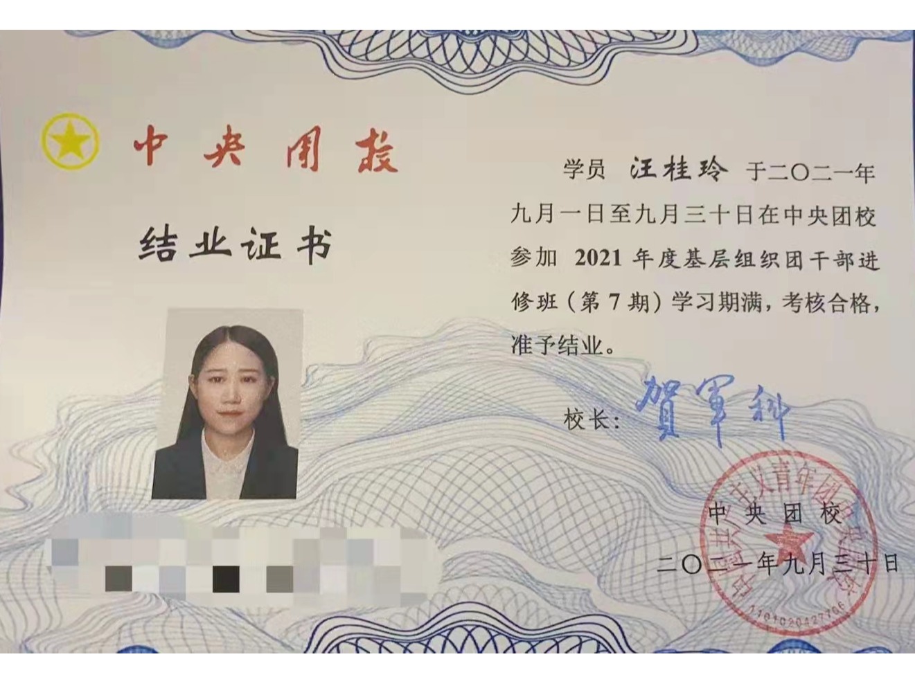 學(xué)習(xí)期間,汪桂玲積極參加學(xué)習(xí),時時處處嚴格要求自己。汪桂玲表示,通過此次培訓(xùn),在理想信念、初心使命、擔當作為等方面接受了一次全方位的政治淬煉。今后,校團委將切實把在參訓(xùn)期間的學(xué)習(xí)收獲轉(zhuǎn)化為推動工作的實際行動,進一步明確共青團工作的職責(zé)主業(yè),為黨匯聚更多青年力量!