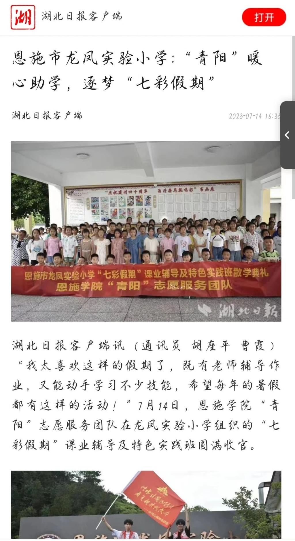 在志愿服務的過程中,湖北恩施學院青陽志愿服務隊的活動成果被湖北日報等媒體報道,該隊伍也在今年第二次入選了共青團中央“七彩假期”志愿活動項目國家示范隊。