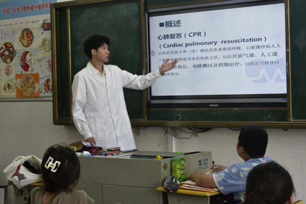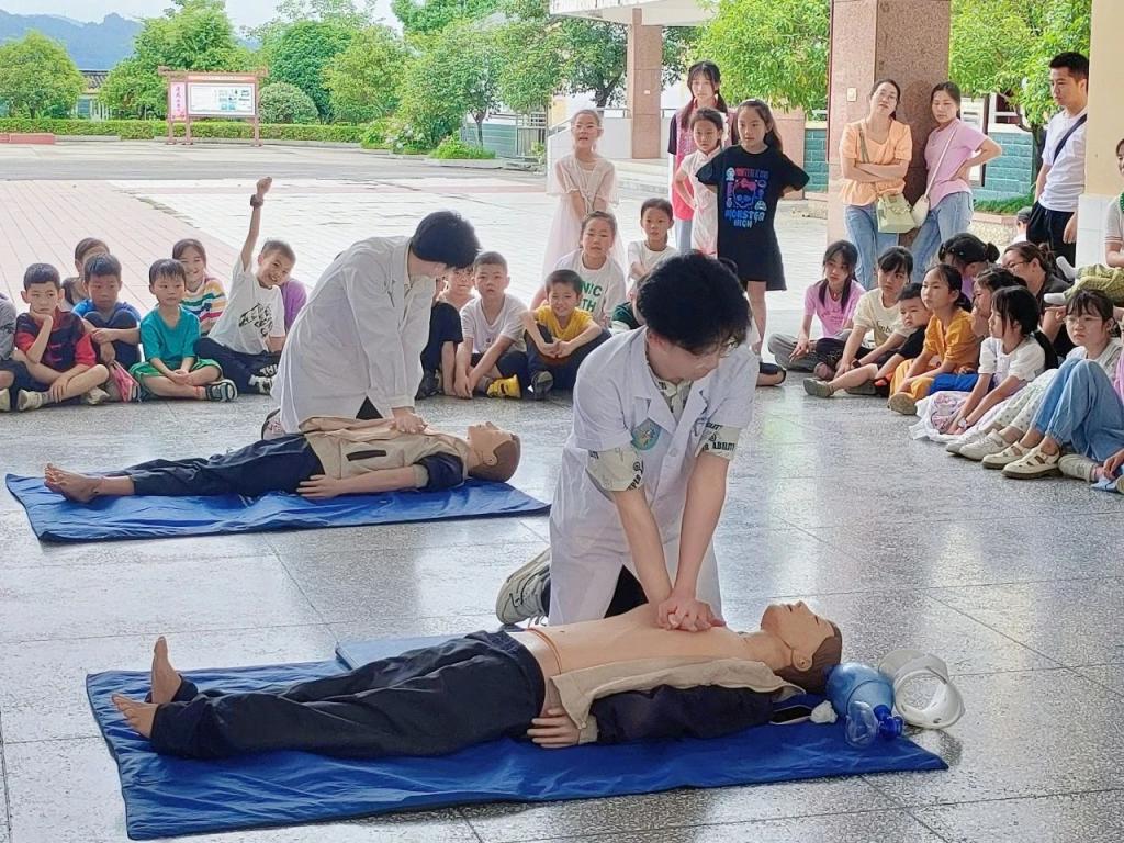 活動不僅僅停留在紙面上,志愿者們在詳細的理論講解之后,還組織現(xiàn)場家長和學生開展技能實踐操作演練,通過模擬實操保證每一個聽過課程的人都能學會簡單的心肺復蘇操作。