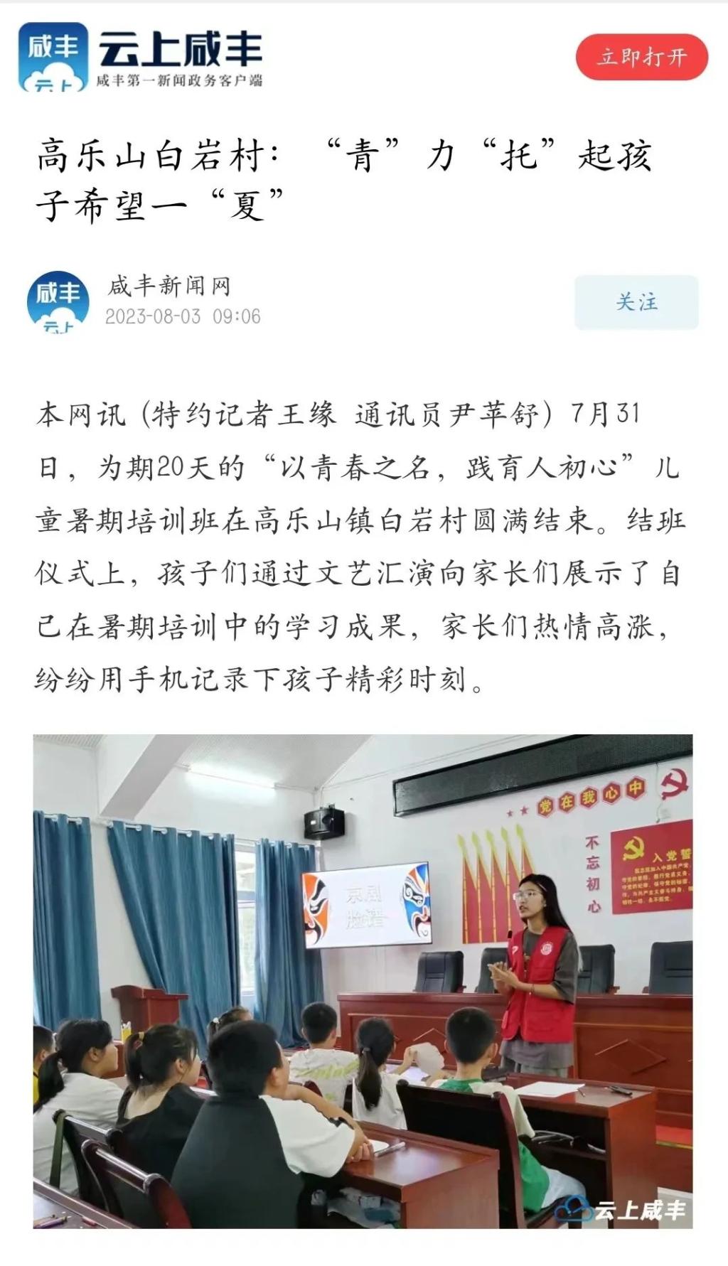 風(fēng)好正是揚(yáng)帆時,奮楫逐浪向未來。盡管赤日炎炎,“青春之我”志愿服務(wù)隊(duì)始終發(fā)揚(yáng)“不甘人后、敢為人先”的進(jìn)取精神,在咸豐縣高樂山鎮(zhèn)白巖村堅(jiān)守。他們的表現(xiàn)引起了社會上的廣泛關(guān)注:該團(tuán)隊(duì)暑期“三下鄉(xiāng)”社會實(shí)踐活動被湖北日報、咸豐新聞網(wǎng)等主流媒體相繼報道。青年志愿者們用汗水詮釋擔(dān)當(dāng)、攜信仰砥礪前行,以實(shí)際行動串聯(lián)起與時偕行的青春旋律!