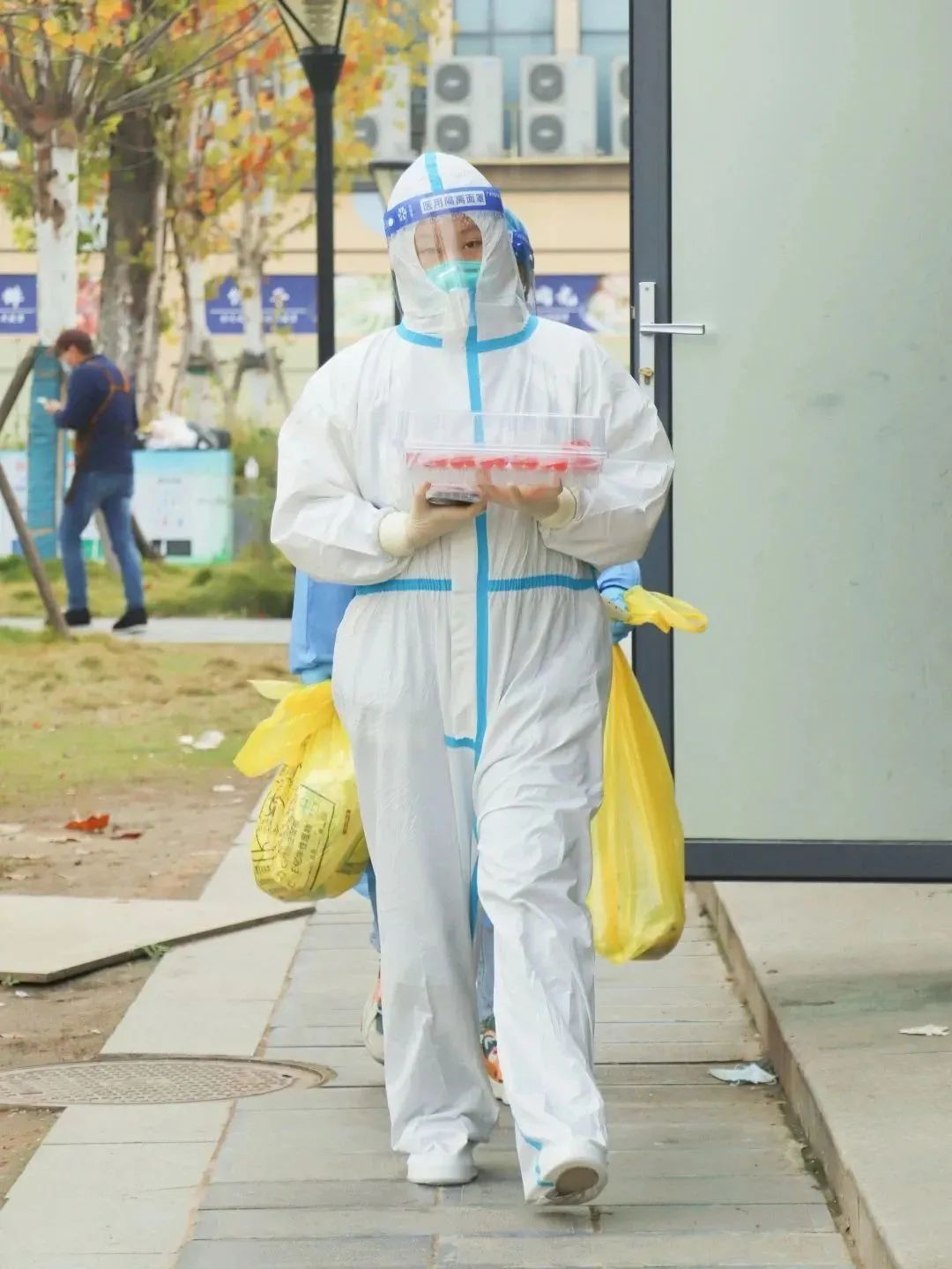 有一份特殊的工作,他們負(fù)責(zé)給居寢隔離的同學(xué)送上溫暖的一日三餐,日常的飯菜卻也顯得格外溫馨。