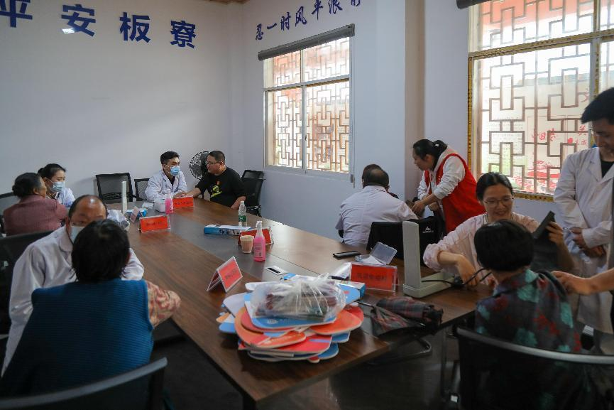 “與愛同行”義診健康活動和醫(yī)學(xué)生實踐活動同步在村委會開展。來自慧宜醫(yī)院的16位專家團隊和醫(yī)學(xué)部的老師組成“微型醫(yī)院”,主要針對常見病、慢性病進行了檢查和進一步診療的建議。大爺大媽們說:“前一天晚上,村委會的大喇叭就廣播說,今天湖北恩施學(xué)院的專家要來給我們看病,我們很高興?!?/p>
