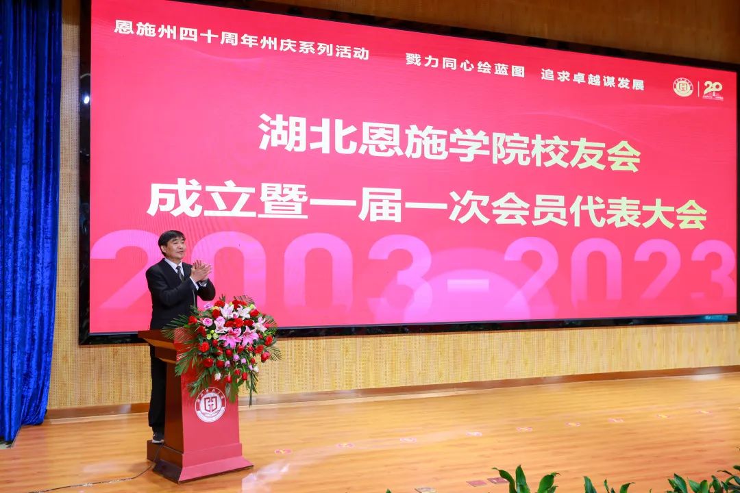 湖北恩施學(xué)院董事長滕靖南致辭。他指出,學(xué)校正處于“發(fā)展中”階段,在校友個(gè)人價(jià)值實(shí)現(xiàn)和學(xué)校發(fā)展目標(biāo)達(dá)成的征程中,學(xué)校和校友需要雙向奔赴、共譜華章。成立校友會(huì)是基于學(xué)校重視,廣大校友、校友工作辦公室及各學(xué)院共同努力。學(xué)校要以建校二十周年為契機(jī),廣泛團(tuán)結(jié)凝聚省內(nèi)外校友,把凝聚校友力量、強(qiáng)化組織建設(shè)、提升服務(wù)效能等方面工作做深做細(xì)做實(shí),筑牢校友情誼聯(lián)絡(luò)根基,搭建校友互動(dòng)互聯(lián)互通平臺(tái)。學(xué)校將進(jìn)一步把校友工作擺在全校工作的重要位置,最大程度地凝聚校友,努力把校友會(huì)建設(shè)成為校友共同擁有的“加油站”和“溫馨家園”。