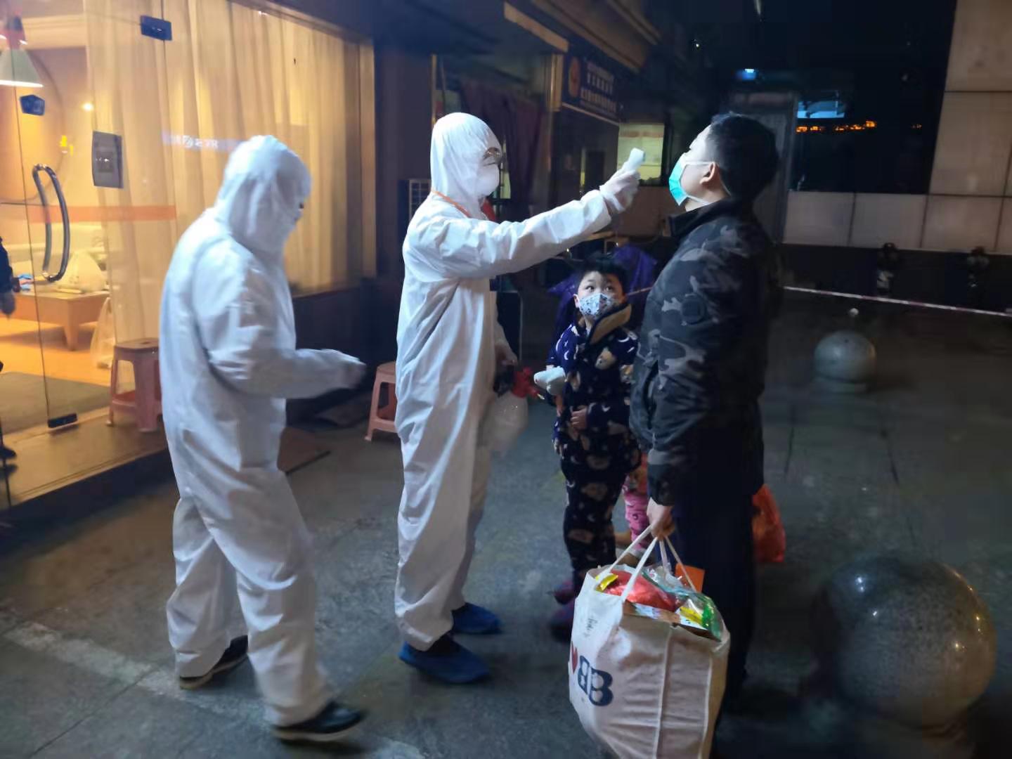 隔離與確診患者密切接觸人員、量體溫、消毒、送飯、處理生活垃圾、防止相互串門引起交叉感染是他的日常工作。每晚9點(diǎn),他會(huì)按時(shí)去收取隔離人員放在門口的生活垃圾,并對(duì)其進(jìn)行消毒后,統(tǒng)一放到指定地點(diǎn)。為了防止隔離人員串門,每晚0點(diǎn)至早晨7點(diǎn)是他在樓道巡邏時(shí)間,凌晨2點(diǎn)左右,同時(shí)要對(duì)整個(gè)樓層進(jìn)行消毒。對(duì)新接收的隔離人員,他會(huì)先為他們測(cè)量體溫,對(duì)體溫在37.3°以下的人員進(jìn)行全身噴灑精消毒,后讓其簽訂隔離知情自愿協(xié)議書再帶入對(duì)應(yīng)房間進(jìn)行隔離。