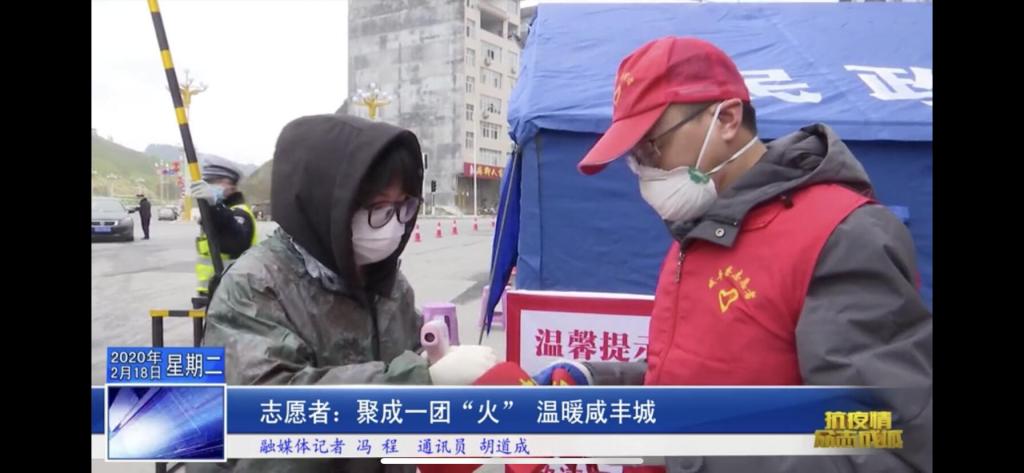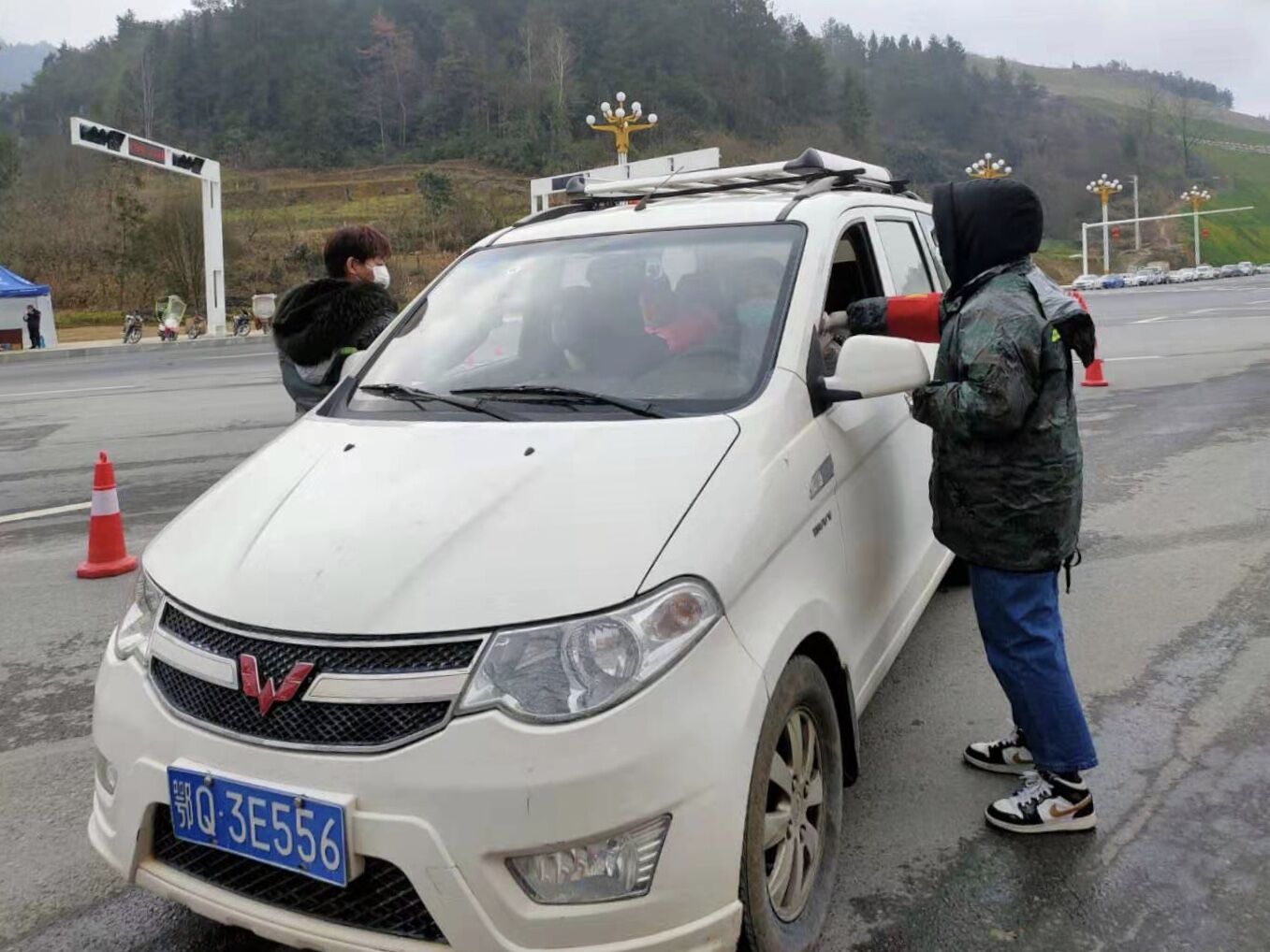 后來她通過公眾號,得知咸豐志愿者的相關(guān)信息,同時(shí)自身也符合招募要求,就和社區(qū)志愿小組協(xié)商交接好工作,之后與咸豐縣公安局的相關(guān)負(fù)責(zé)人取得了聯(lián)系。2月11日,作為恩施州咸豐縣公安局的一名志愿者,開始了為期7天的志愿者工作。她在卡口主要負(fù)責(zé)給出入人員測量體溫,遇到體溫不正常的人,首先排除因?yàn)榇皯艟o閉、吹暖氣所導(dǎo)致的暫時(shí)體溫過高的情況,讓其關(guān)掉熱空調(diào),開窗通風(fēng),之后進(jìn)行二次體溫檢查。