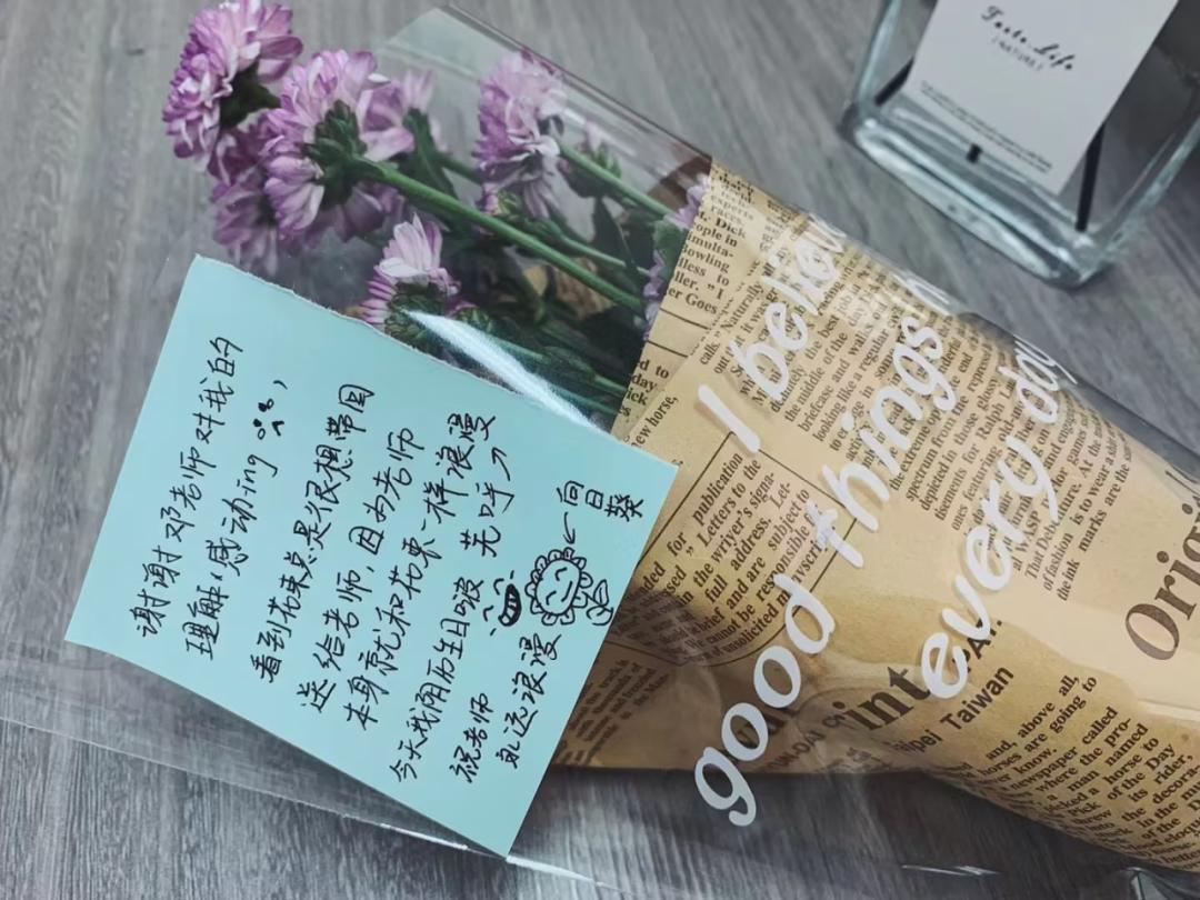 談到有沒有正在交往的對象時,鄧藝明笑著說:“有時間談戀愛,還不如多花一點時間在學生身上。”她是愿意為學生花心思的,每年都會為學生制造一些特殊的儀式感。2020級的學生入校時,她讓自己帶的400多個學生每人給“五年后的自己”寫了一封信,那400多封信至今仍保存在她的辦公桌里;在特別的節(jié)日里,會細心給學生們準備小禮物。真心換真心,學生感受到她的用心,她也得到許多來自的溫暖。