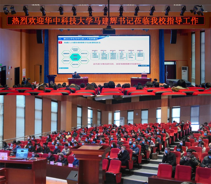 為科學謀劃和推動學校醫(yī)學專業(yè)認證工作,增強教職員工對醫(yī)學專業(yè)認證工作的認知,11月7日,學校特邀華中科技大學黨委副書記、國家醫(yī)學專業(yè)認證專家馬建輝教授,舉辦《臨床醫(yī)學專業(yè)認證的實踐與探索》專題報告會,全體校領導、各職能部門全體人員、各二級學院系主任及以上干部、醫(yī)學院全體教職員工參加會議。報告會由校長馬鳳余主持。