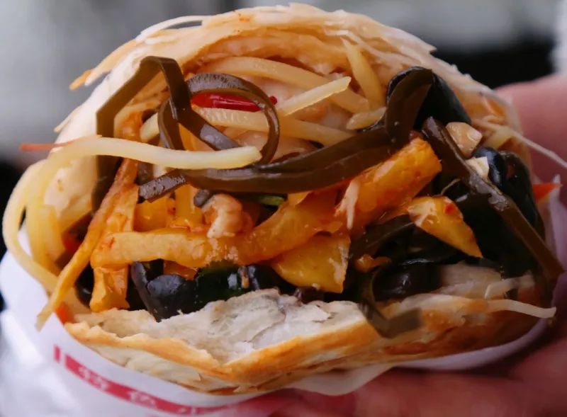 在西安什么都可以夾饃,一些打趣的說法,給他們一個饃,他們能夾下整個世界。我們學校的這家肉夾饃素菜也可以根據(jù)自己的需求加哦。