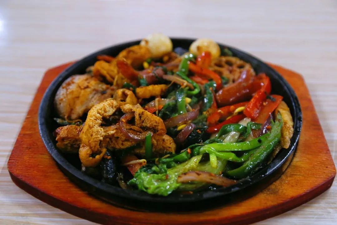 每次饞肉肉了一定要去東北烤盤飯,想吃烤肉燒烤卻覺得自己吃很不實惠那不如去吃烤盤飯,自選的菜里面樣式很多有煙熏鵝肉、 小酥肉、腌制好的雞塊、脆皮腸、培根…