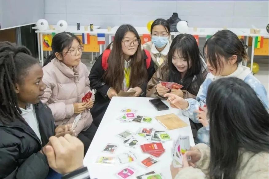 為進(jìn)一步豐富學(xué)生課外活動,營造國際化氛圍、拓寬學(xué)生視野,打造跨文化交際平臺,11月28日晚,學(xué)校教務(wù)處協(xié)同英語社組織的國際英語沙龍系列活動第一期“英國文化之旅”在學(xué)校微格教室火熱舉辦。本次活動特別邀請了來自坦桑尼亞、肯尼亞的三名留學(xué)生參與,以活潑生動的游戲活動為載體,設(shè)置英國美食攤位、文化攤位、娛樂攤位,為同學(xué)們提供一個(gè)沉浸式的語言學(xué)習(xí)機(jī)會,吸引了全校數(shù)百名英語愛好者報(bào)名參與?;顒蝇F(xiàn)場,同學(xué)們熱情高漲,樂在其中,好評如潮。