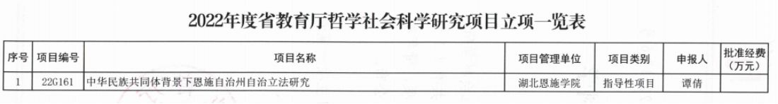 譚倩老師主持的《中華民族共同體背景下恩施自治州自治立法研究》獲得指導(dǎo)性項目立項資助