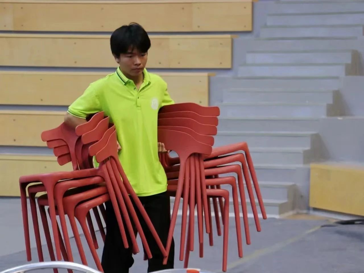 在彩排階段,場地和器材資源十分匱乏,致使我們不得不與健美操隊共用同一場地。我們由衷感激指導老師所付出的努力和無私幫助,解決了這一困境。