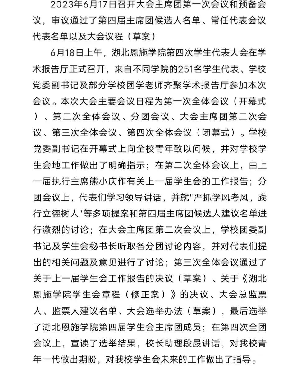 5、選舉產生湖北恩施學院第四屆學生主席團成員;