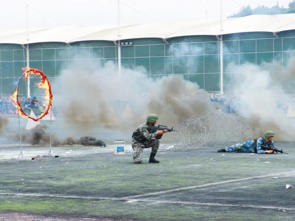 接著是數(shù)字方陣、隊列方陣、擒敵術(shù)表演、硬氣功、刺殺操、應(yīng)急棍表演和營救方案演練,無不展現(xiàn)了同學(xué)們在軍訓(xùn)中培養(yǎng)出的頑強(qiáng)作戰(zhàn)的作風(fēng)和不怕苦、不怕累的美好品質(zhì)。