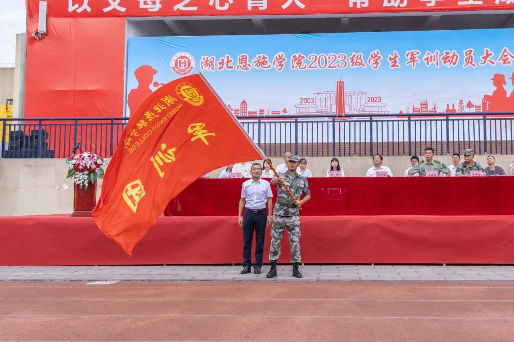 由湖北恩施學(xué)院校長助理、軍訓(xùn)團(tuán)辦公室主任王冕主持軍訓(xùn)開幕式。