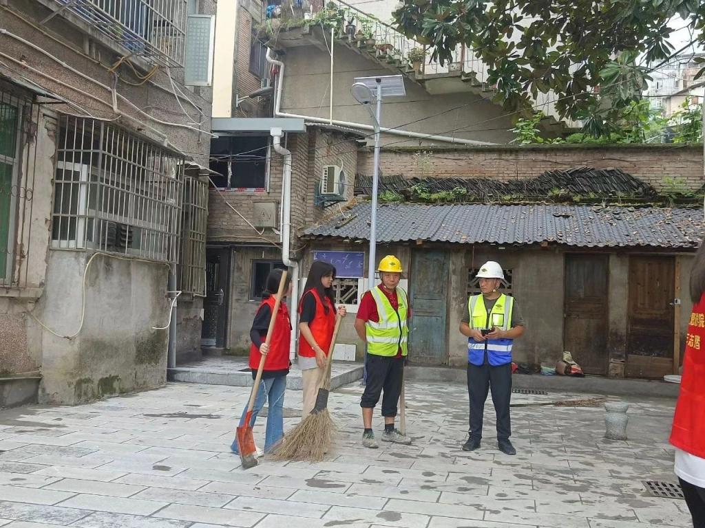 志愿者們對(duì)周邊環(huán)境衛(wèi)生進(jìn)行清理