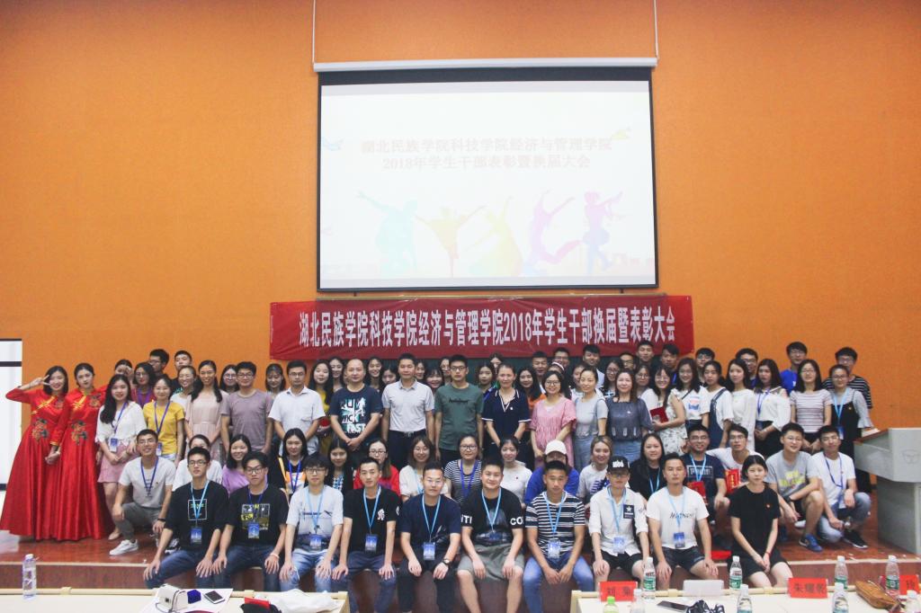 (本網(wǎng)訊 通訊員 孫浩 攝影 周宜 75日16:00,經(jīng)濟與管理學院于多功能報告廳舉辦了2018年學生干部換屆暨表彰大會。出席本次大會的有學院副院長張高勝老師、學工處處長朱耀乾老師學工處副處長李銀超、校團委書記陸玲老師、院黨總支副書記、學生科科長劉娜老師、總支書記劉丹老師、學工處丁玲老師劉粟老師、院孫江艷老師孫強語老師、邵科老師,各級學生組織代表及兄弟院系學生干部代表、我院新老學生干部、各班學生代表等百余名同學。校廣播臺主持人龍宇主持此次大會。