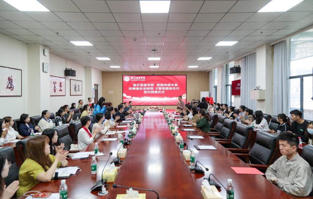 座談交流上,校長(zhǎng)馬鳳余致辭并介紹了學(xué)校情況和畢業(yè)生就業(yè)需求,咸豐縣人民政府副縣長(zhǎng)唐紅珍介紹了縣情及該縣就業(yè)創(chuàng)業(yè)相關(guān)情況,咸豐縣人力資源和社會(huì)保障局黨組書記、局長(zhǎng)劉忠赤介紹了咸豐縣高校畢業(yè)生就業(yè)創(chuàng)業(yè)政策。與會(huì)雙方領(lǐng)導(dǎo)就政校企合作育人理念達(dá)成了高度一致,并在實(shí)習(xí)就業(yè)、人才引進(jìn)、聯(lián)合培養(yǎng)等方面達(dá)成初步合作意向。隨后,雙方簽訂校地合作協(xié)議并授牌“恩施州咸豐縣駐湖北恩施學(xué)院招引服務(wù)站”。