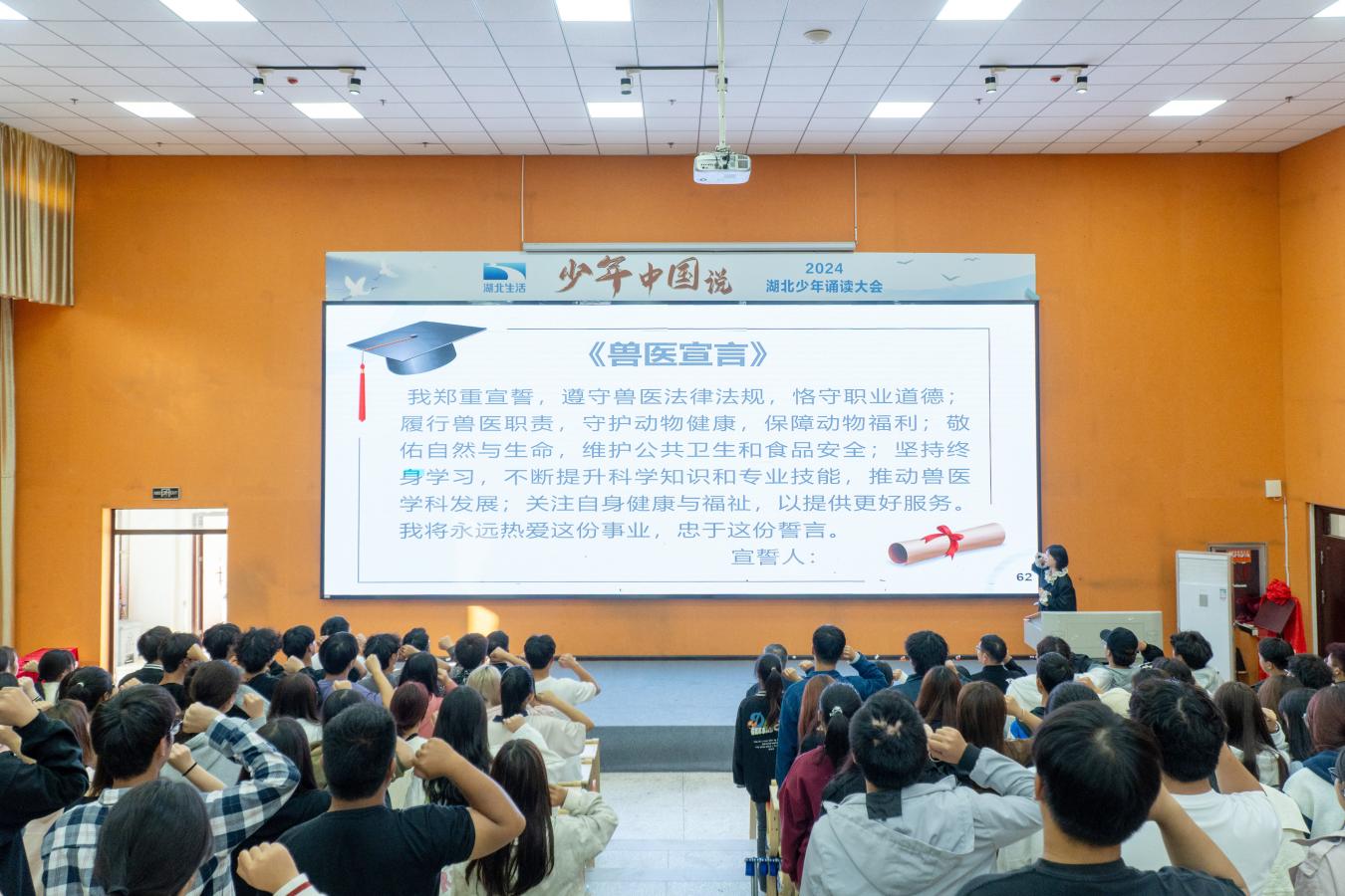 最后,寵物醫(yī)療技術(shù)專職教師肖玉花帶領(lǐng)全體學(xué)生宣讀《獸醫(yī)誓言》。
