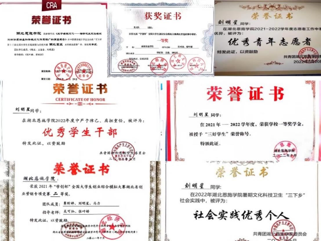 在團(tuán)委的工作中,我積極參加各類志愿活動(dòng)和團(tuán)體活動(dòng),時(shí)刻用行動(dòng)去履行作為學(xué)生干部應(yīng)承擔(dān)的責(zé)任與義務(wù)。在協(xié)會(huì)中,非常感謝社團(tuán)指導(dǎo)老師張葉嬌帶領(lǐng)我接觸到了許多學(xué)科競(jìng)賽,并獲得了多項(xiàng)榮譽(yù),其中有第六屆全國(guó)高校企業(yè)價(jià)值創(chuàng)造實(shí)戰(zhàn)競(jìng)賽省二等獎(jiǎng)、第十三屆“正大杯”全國(guó)大學(xué)生市場(chǎng)調(diào)查與分析大賽湖北省三等獎(jiǎng)、第九屆“學(xué)創(chuàng)杯”全國(guó)大學(xué)生創(chuàng)業(yè)綜合模擬大賽湖北省一等獎(jiǎng)等多項(xiàng)榮譽(yù)。在學(xué)院教學(xué)科實(shí)習(xí)中,我也非常感謝曾冰潔老師,讓我學(xué)到了許多課堂上學(xué)不到的工作技能。我始終記得曾老師第一次對(duì)我說(shuō)的話“我希望你能跟著我學(xué)到真正的東西”至今仍讓我記憶深刻。也正因?yàn)橛龅搅诉@么多良師,也才讓我對(duì)未來(lái)有了更清晰的規(guī)劃。
